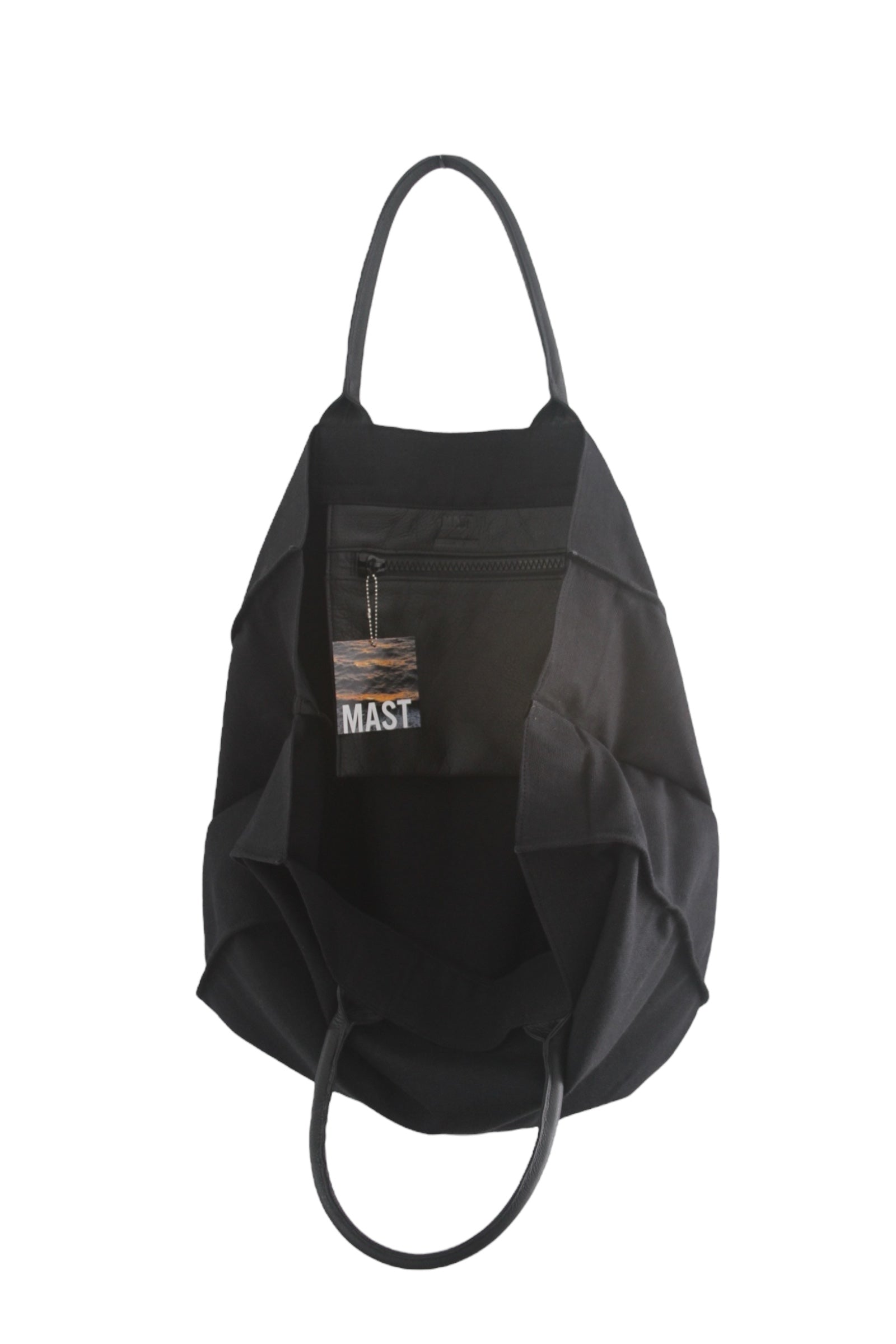 100% linen, double-layer body. Leather pocket and handles. American Made by hand in Los Angeles.